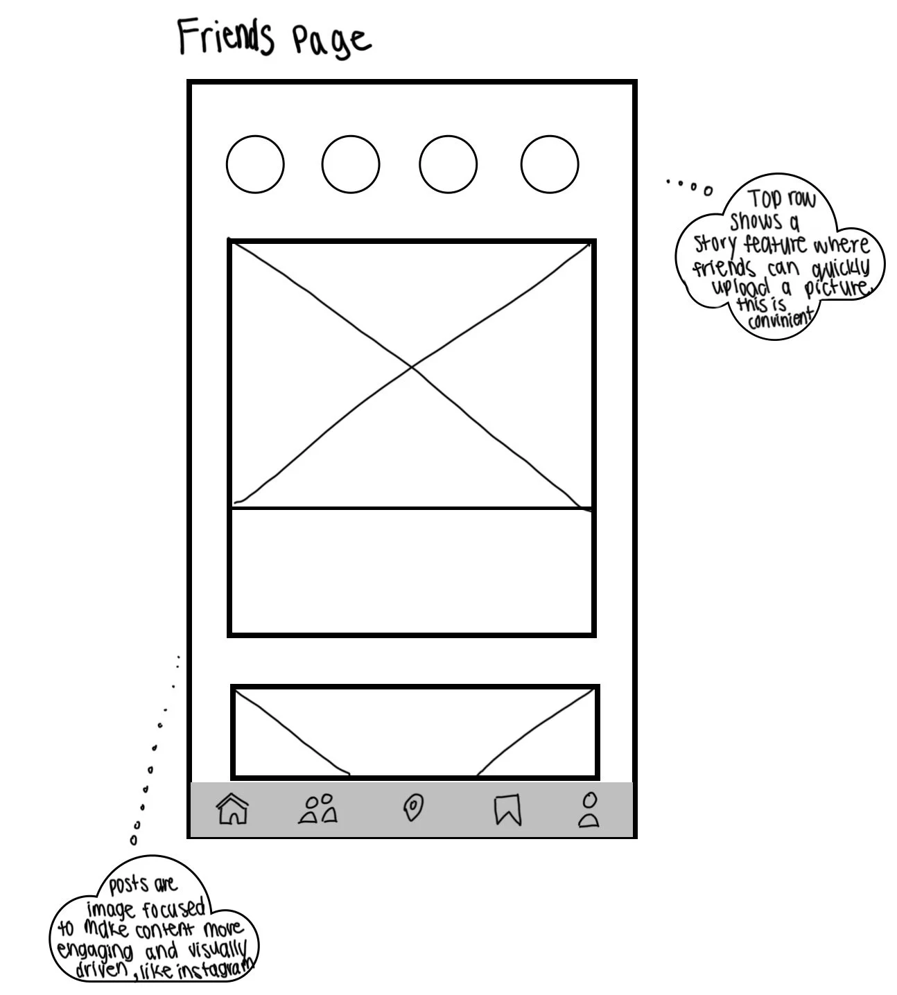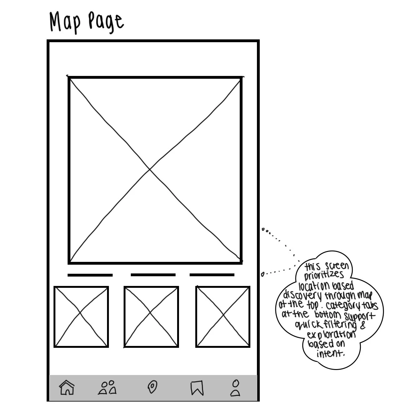 I started with low-fidelity sketches to quickly explore layout ideas and core functionality, then moved into mid-fidelity wireframes to refine structure, hierarchy, and navigation across key screens. This process allowed me to focus on how users discover deals, browse locations, and engage with social content without getting distracted by visual design. Together, these wireframes helped validate the overall flow before moving into Figma designs.